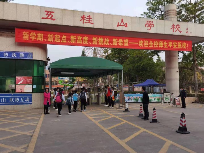 新年好!同學們好!老師好!歡迎同學們平安回校!2月22日,是中山市2021年春季開學的第一天。是日早上,五桂山學校行政、教師早早來到校門口迎接學生返校。師生互相問好,笑意濃濃,情意寫在臉上。為了讓學生有序平安返校,學校全體行政早在20日,全體教師在21日就提前返回學校籌備新學期的工作:統一思想,打掃課室衛生;準備課本資料,備好開學第一課。忙得不亦樂乎!