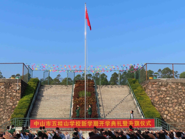 升旗儀式后,舉行開學典禮。五桂山學校黨支部書記陳玉玲在典禮上送給全體學生三個新年“禮物”。健康的身體:希望同學們在新學期積極參加各項體育活動,保證1天能夠有1個小時的活動時間,鍛煉好健康的體魄;陽光的心態:希望同學們樂觀向上,能夠正確面對挫折與困難,遇到問題,多與老師與家長溝通;良好的習慣:希望同學們養成良好的學習習慣和行為習慣,培養高雅的興趣,為美好的前程打好堅實基礎。