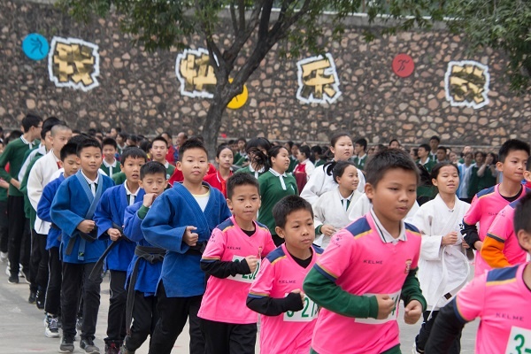 “校園馬拉松歡樂跑”是五桂山學校創建市一流名校征途中的一項重要活動,是學校繼推動“校園快樂足球”活動之后的又一個全校性的大型活動,至今已經舉辦了兩屆。與首屆“校園歡樂跑”相比,參加本屆活動的人數由300人增加到500人;跑程也本著循序漸進的原則,由3公里,增加到3公里和5公里兩個。參加人數、跑程的增加,說明學校推動的這項運動越來越吸引學生。