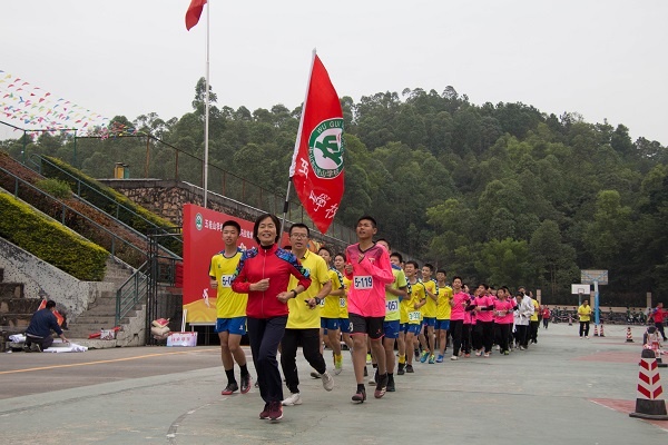 是日上午10點,所有參賽隊員排成整齊的方隊,集中在學校籃球場舉行開跑儀式。學校黨支部書記陳玉玲作開跑動員講話,五桂山街道教育和體育指導中心張立功主任宣布五桂山學校第二屆校園馬拉松歡樂跑開跑。本次活動共設有3公里跑和5公里跑,學校5至9年級的學生和全體老師共800多人自愿報名參加。校園歡樂跑的路線安排在學校內,沿途空氣清新、綠樹成蔭、景色怡人,讓參賽者在跑馬過程中既可以放松心情,又可更加深入感受校園的美麗環境。