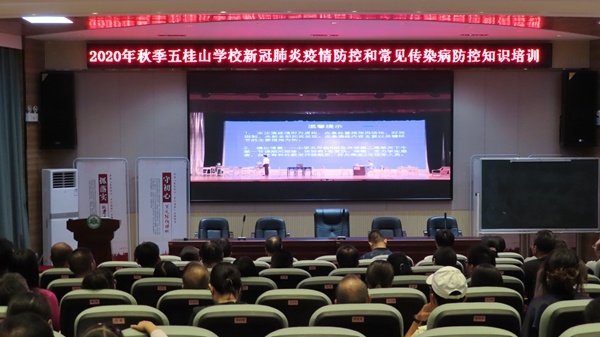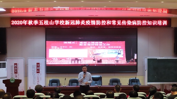 疫情一日不消,防控工作一刻不停。為消除全校師生在疫情防控工作中的麻痹大意的思想,進一步學習和掌握科學規范的疫情防控知識,切實做好學校秋冬季節新冠肺炎疫情和常見傳染病防控工作, 10月22日下午,五桂山學校在綜合報告廳開展2020年秋季五桂山學校新冠肺炎疫情防控和常見傳染病防控知識培訓會。學校全體教職工參加了本次培訓。