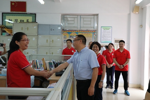 是日上午9點,方英恩書記和主管教育工作的黨工委副書記、人大工委主任李佳利來到學校,向五桂山學校負責人陳玉玲詳細了解新學期學校師生的返校情況,要求學校要把師生的生命健康放在第一位,“防疫”與“教學”兩手都要抓,不能有絲毫的麻痹大意。隨后,方英恩一邊參觀學校的校園文化建設,調查飯堂師生的用餐情況,一邊聽取學校的工作情況匯報,了解學校在辦學過程中遇到的實際困難。
