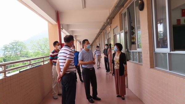 余主任來到學校后,向學校詳細了解了第三批返校的師生人數、學生上下學的交通方式、線上學習和師生身心健康等情況。五桂山學校負責人陳玉玲副校長詳細地匯報了學校為第三批學生返校所做的各項準備工作。陳校長的匯報突出 “防疫”與“復學”兩個關鍵詞,在兩個工作都不放松的原則下,學校利用線上家長會,對家長進行親子溝通的培訓,利用線上主題班會對學生進行“珍愛生命”的心理健康教育。