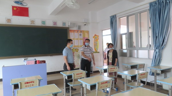 2020年5月15日上午,五桂山黨工委副書記、辦事處主任余振孝來到五桂山學校,督查學校第三批返校復學工作。