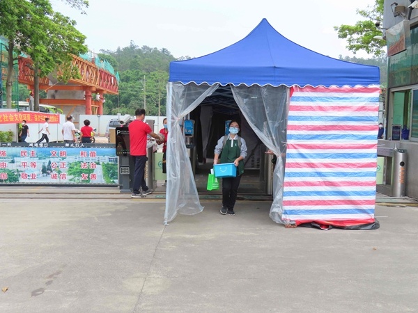 下午1點30分,離通知返校的時間還有半個小時,五桂山學校黨支部書記陳玉玲和藍青林、劉繼恭兩位副校長早早來到學校大門和學校體育館北門,再次檢查設施設備和工作人員的到崗的情況。1:45分開始,懷著急切心情的學子們就迫不及待來到學校大門。在現場老師的引導下,學生順利通過體溫監測點,滿懷微笑進入久別重逢的校園。天氣雖然炎熱,但為讓學生有回家的感覺,老師們不辭勞苦,在熾熱的陽光下鼓掌歡迎學生平安返校,引導學生測溫,幫助學生拎生活、學習用品,現場為家長答疑,秩序井然。