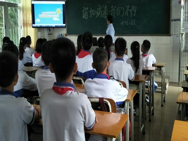 各班通過PPT演示視頻、動畫等形式開展了班會活動。班主任首先對諾如病毒的傳播途徑、臨床表現以及預防措施做了詳細的介紹:諾如病毒是一組形態相似、抗原性略有不同的病毒顆粒,具有發病急、傳播速度快、涉及范圍廣等特點,是引起非細菌性腹瀉暴發的主要病因;食物、水等都很容易被諾如病毒感染,病毒可通過手、嘔吐物、糞便等傳播;無論是哪一個年齡段的人群,均可能感染諾如病毒,一般在感染病毒后12到48小時出現癥狀。