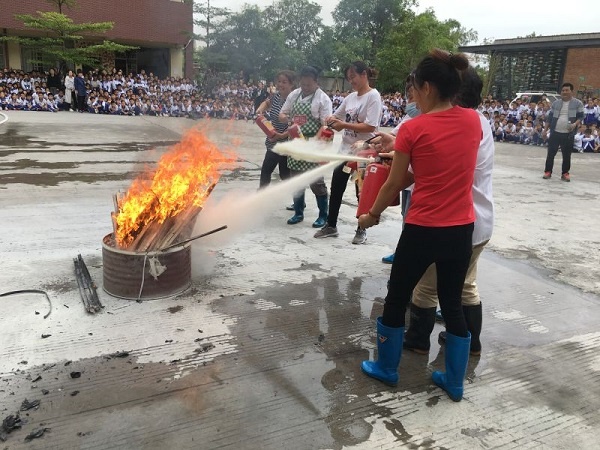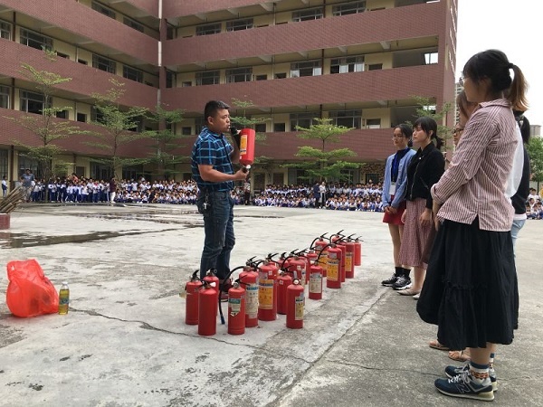 學校還邀請了專業的消防工作人員對全校師生進行了一系列的消防知識教學,包括正確使用滅火器的步驟,逃生知識等。師生們認真觀看學習,在消防工作人員的指導下,新進校的老師、各班的班長親身上場實踐,大家都能按步驟正確使用滅火器,撲滅了火源,真是受益良多。