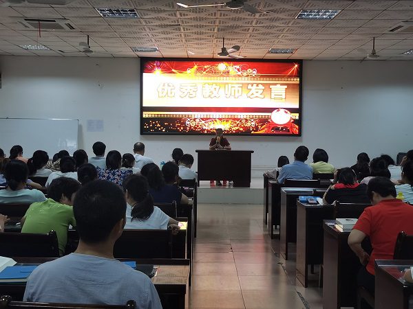 會議的最后一個議程由本年度市級優(yōu)秀教師楊輝、廖霧兩位教師發(fā)言。兩位教師通過講述自身光榮的教育教學(xué)事跡,給在場的每位老師分享了自己對“老師”這個職業(yè)的理解。她們提出:對學(xué)生要因材施教,平等看待每一位學(xué)生,不放棄每一位學(xué)生等觀點深受老師們的贊同。