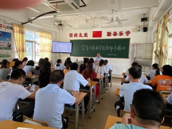 只爭朝夕,不負韶華,2020年秋季開學工作正緊鑼密鼓地進行。2020年8月28日上午,桂南學校中學部組織全體教師召開《桂南學校教師手冊》培訓會。會議由德育處張春霞主任主持,全體中學部教師參加了學習。經過一個暑假的休整,全體中學部教職工精神飽滿。
