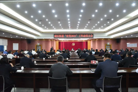 3月11日,南區街道召開“攻堅2021”工作動員大會,動員全街道上下一心、錨定目標、苦干實干、攻堅克難,奮力實現第一季度開門紅、全年滿堂紅。
