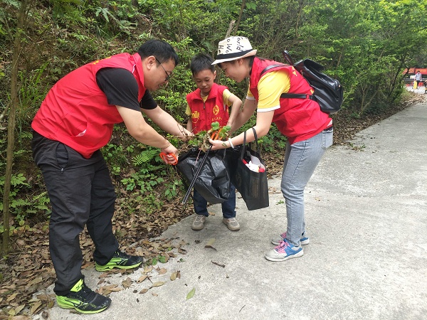 上午9點,志愿者們準時來到大尖山腳下,簡短的動員講話后,志愿者紛紛帶上手套、拿著鐵鉗、塑料袋等清潔工具,從山腳沿著上山的路拾級向上,一邊清理沿路垃圾,一邊向游客宣傳保護環境的知識。志愿者們不怕山高路陡,不怕苦不喊累,克服各種困難,認真仔細地撿拾垃圾,還大自然一個干凈。志愿者們的這種無私奉獻的舉動贏得了游客們的肯定和贊揚。