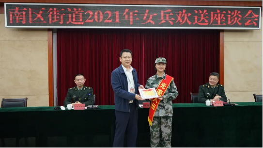 3月22日下午,南區街道為女兵馬燕萍舉行歡送儀式。這是30年來南區街道送出的第一個女兵,綜合素質非常好。南區街道黨工委副書記、辦事處主任謝軍杰,黨工委委員、武裝部部長王小龍,征兵辦和各社區干部,以及家屬代表等近50人出席。