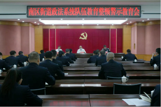 為扎實開展政法隊伍教育整頓工作,打造一支黨和人民信得過、靠得住、能放心的政法鐵軍,3月25日,南區街道召開政法隊伍教育整頓警示教育大會暨黨紀黨規培訓會,南區街道黨工委副書記朱勇主持會議,黨工委委員、公安分局局長鄧仲漢,黨工委委員、紀委書記廖華添,南區街道政法編制人員,公安分局全體民警參會。