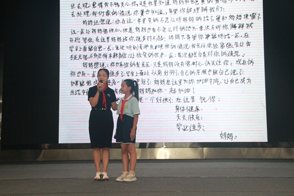 儀式第二部分,進(jìn)行了少先隊抗疫詩歌展演,誦聲瑯瑯,字字鏗鏘,表達(dá)了隊員們感恩前線戰(zhàn)士的付出,要珍惜生命,努力學(xué)習(xí)。其后是親子傳情環(huán)節(jié):凌廳同學(xué)和她的媽媽心語對話,情真意切,感人至深,現(xiàn)場還播放了家長對孩子們想說的話,以及孩子們想對爸媽說的話視頻,家長們悠悠叮嚀,聲聲鼓勵;孩子們紛紛表示在校做個好學(xué)生,在家做個好孩子,努力學(xué)習(xí),天天向上。