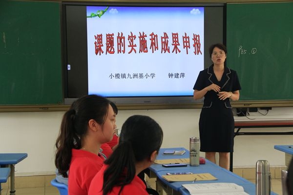隨后,鐘建萍老師為老師們帶來了《課題的實施和成果申報》的講座。鐘老師詳細介紹了課題的實施需要注意哪些問題,要將日常的教學,與科組教研,課題研討聯系起來。課程的成果內容有哪一些,要做好詳細計劃,在課題研究過程中一一展現出來。在平時要注意收集過程性的資料,比如:培訓資料,活動圖片,教學設計,教育教學論文,教學反思,聽課意見等等。整個講座讓在座老師對課題的研究與實施有了更深層次的理解,受益匪淺。