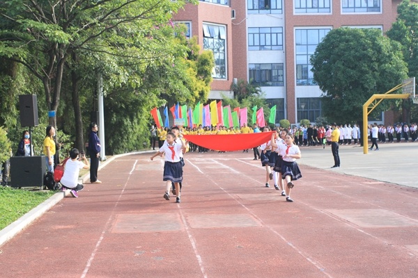 大會(huì)開(kāi)始前,體育科組全體總動(dòng)員對(duì)比賽場(chǎng)地進(jìn)行精心布置,每個(gè)班都全身心投入開(kāi)幕式節(jié)目,別開(kāi)生面、創(chuàng)意無(wú)限的入場(chǎng)式,各班將抗疫精神融入表演當(dāng)中,充分展示了升平師生的風(fēng)采和作為中國(guó)人的自豪。五星紅旗伴隨著國(guó)歌隨風(fēng)飄揚(yáng),冉冉升起,在學(xué)生運(yùn)動(dòng)員代表和老師裁判代表宣誓后,何德雄校長(zhǎng)隆重宣布“2020年升平小學(xué)第十一屆‘家委杯’運(yùn)動(dòng)會(huì)開(kāi)幕”,一瞬間點(diǎn)燃了所有學(xué)生心中的運(yùn)動(dòng)熱情。
