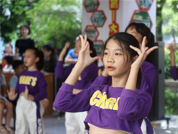 請您來聽!由張雪老師、蘇彩燕老師、陳嘉榆老師帶來的快板三句半,原來還有一個驚喜——鄭鎰照老師的盛情加盟,為節日增色不少,一不留神,成主角了,成功圈粉!他們實話實說地把北小的老師們都夸了一遍——開拓創新的劉云霄校長、心系師生的曾春紅校長、廢寢忘食的葉茂發主任、管班有序的廖少中老師、關愛學生的林欣旭老師、掛心學生的吳明娟老師、不畏艱難的Miss湛,個個都是耀眼的明星,北小的講壇,星光熠熠!請您來看!一群嘻哈姑娘,又酷又颯地出現在舞臺上,你能想象這是平時站穩三尺講臺的老師嗎?沒錯,就是這一群姑娘,站得穩講臺,跳得了熱舞。