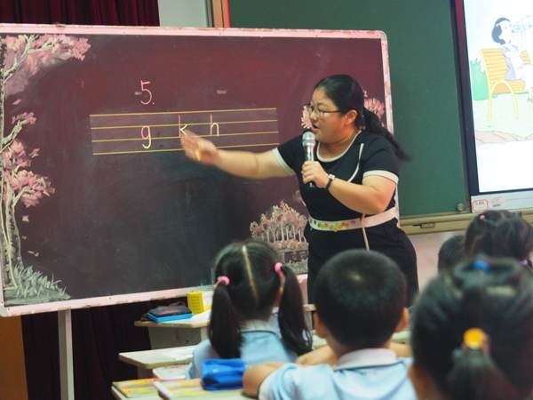 聽,德星小學黃桂鈴老師甜美的聲音,真像魔幻森林里的精靈,指引孩子們在童話情境中學習新知。看,孩子們在教師的指引下,全神貫注的聽著課,享受著“g、k、h ”給她們帶來的樂趣呢。第二節是九州基小學張宇老師授課一年級拼音gkh,第二課時。課堂上,張老師深厚的教學功底及精湛的教學藝術,深深地吸引著剛入學不久的孩子們,也深深的吸引著全場聽課的老師們。