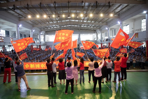 2021年3月18日,菊城中學全校師生在體育館隆重舉行中考百日沖刺誓師大會。菊城中學全體師生及部分家長代表出席了本次活動,共同見證了菊中初二、初三兩個年級學子沖刺中考誓創輝煌的決心與斗志。