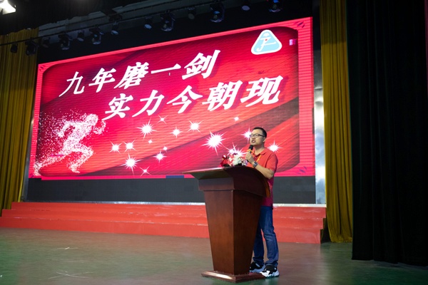 誓師大會由林木茂副校長主持,活動在觀看《入黨誓言》的視頻中拉開序幕。簡單的畫面,樸實的鏡頭演繹著一個個不朽的傳奇。短短三分鐘的視頻讓全體菊中人心潮澎湃、熱血沸騰,深深感悟著:平凡鑄就偉大,英雄來自人民。每個人都了不起!