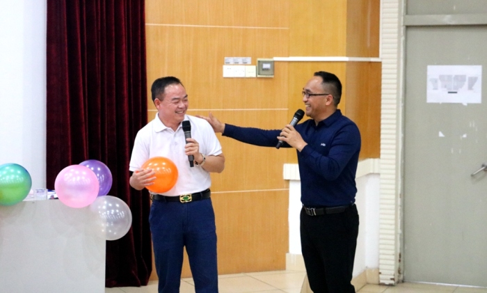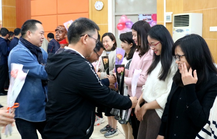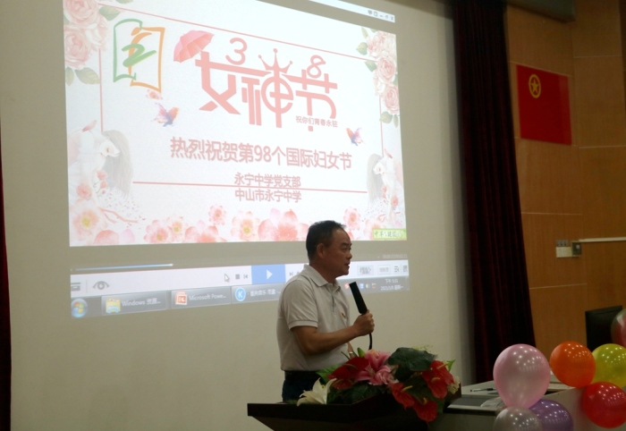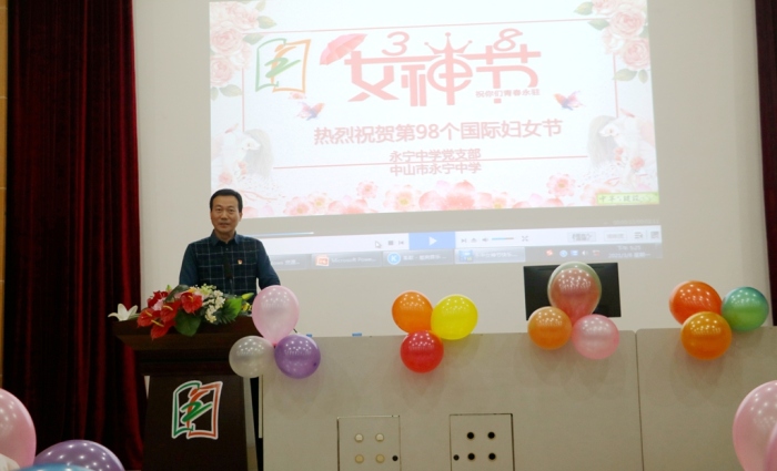 首先,黨支部書記陳清茂校長致辭,陳校長感謝全體女教職員工為永寧中學(xué)的辛勤付出,并送給女神們?nèi)浠ǎ耗久藁ād子花、紫荊花,衷心祝愿永中“女神”們美若天仙笑聲不斷,年輕漂亮魅力無限!