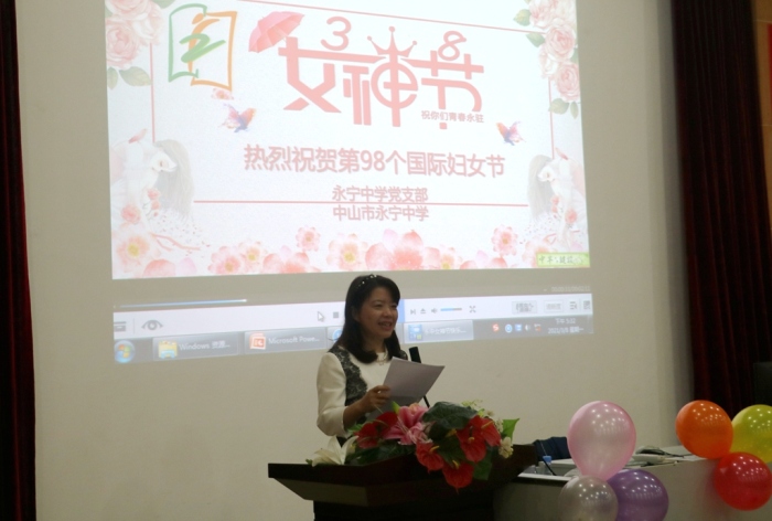 “女神節(jié)快樂!”一聲聲溫馨的祝福,女神們笑顏如花;一束束鮮花在手,女神們心里樂開了花……2021年3月8日是第98個國際婦女節(jié),當(dāng)天下午第八節(jié)課,中山市永寧中學(xué)在學(xué)校階梯室舉行了熱烈的別開生面的慶祝活動。