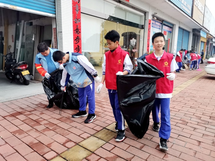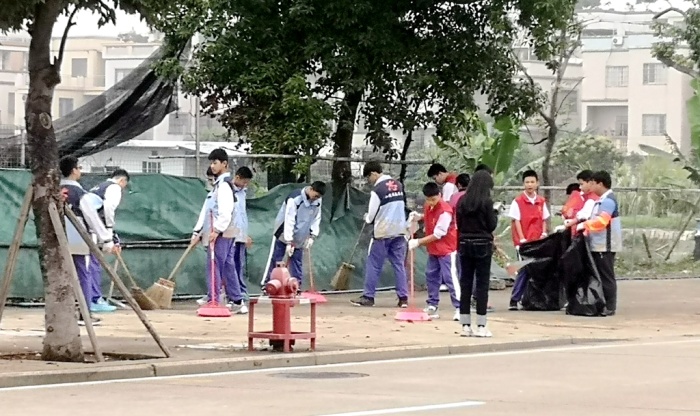 隨后,100名志愿者與永寧社區(qū)聯(lián)合開展愛國衛(wèi)生志愿服務(wù)活動,分別對永中校園和永寧轄區(qū)的永星路道路兩邊的雜物、衛(wèi)生死角進行清理。在楊青華副校長、戴放良主任、羅結(jié)晶副主任、林泳副主任、何健君級長、包小滿級長、鐘燕老師的帶領(lǐng)下,在永寧環(huán)衛(wèi)處工作人員的指導(dǎo)和配合下,清理了校園衛(wèi)生死角和永星路道路兩邊的衛(wèi)生,共同營造了干凈、衛(wèi)生的社區(qū)環(huán)境和校園環(huán)境。在勞動的過程中,師生們也感受到了勞動的辛苦,更收獲了奉獻的甘甜。