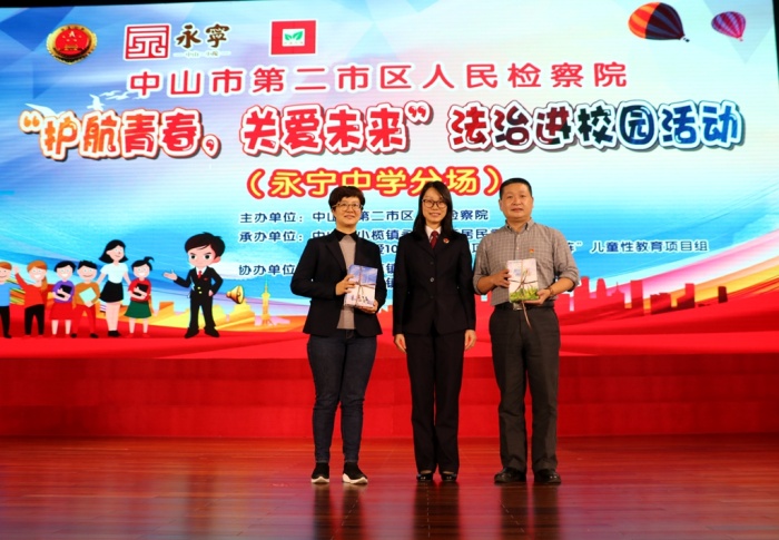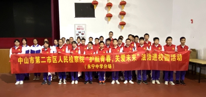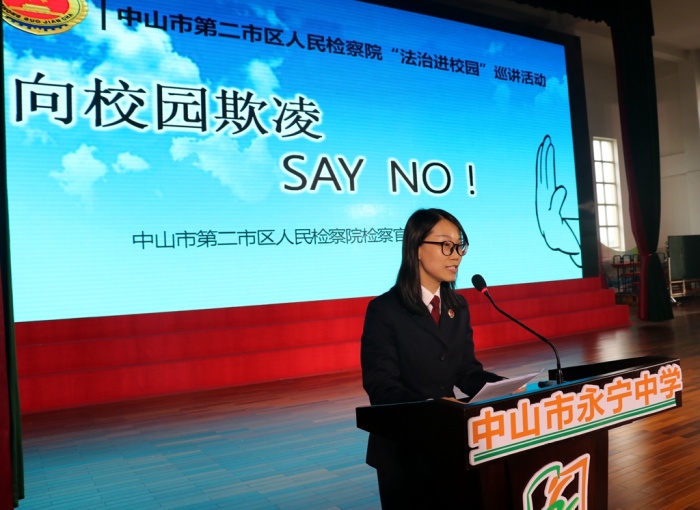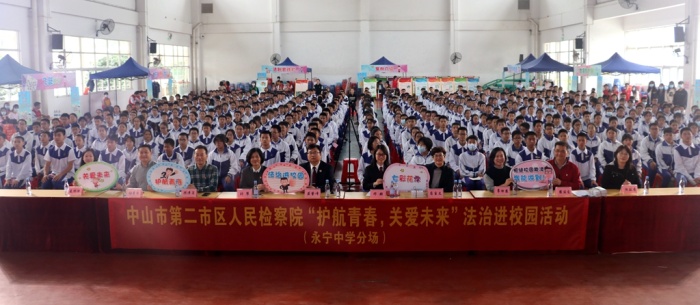 12月11日下午,中山市第二市區(qū)人民檢察院在中山市永寧中學(xué)體育館舉辦“護(hù)航青春,關(guān)愛未來”的法治進(jìn)校園活動(dòng)。此次活動(dòng)由中山市第二市區(qū)人民檢察院主辦,小欖鎮(zhèn)永寧社區(qū)居委會(huì)、永寧中學(xué)承辦,小欖鎮(zhèn)一優(yōu)文化教育咨詢服務(wù)中心協(xié)辦。參與本次活動(dòng)的領(lǐng)導(dǎo)嘉賓有:中山市第二市區(qū)人民檢察院第三檢察部副主任、一級(jí)檢察官龔登峰先生、二級(jí)檢察官鄧艷女士、永寧社區(qū)黨委副書記劉琴女士、永寧社區(qū)黨委、居委會(huì)布寶文委員、以及永寧社區(qū)團(tuán)委、婦聯(lián)相關(guān)領(lǐng)導(dǎo)、學(xué)校領(lǐng)導(dǎo)和初二級(jí)540多名師生共同參與了本次活動(dòng)。