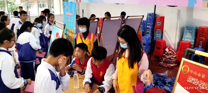 有獎(jiǎng)互動(dòng)游戲融知識(shí)性、趣味性和體驗(yàn)性,共設(shè)置七個(gè)游戲攤位:法制宣傳欄、視像宣傳、案例介紹、欺凌放大鏡、永寧“三分王”、安“圖”生、飛躍XY等。在永寧社區(qū)志愿者和永寧中學(xué)學(xué)生志愿者的引導(dǎo)、講解下,初二級(jí)的同學(xué)們積極參與,踴躍答題,現(xiàn)場(chǎng)氣氛十分熱烈。
