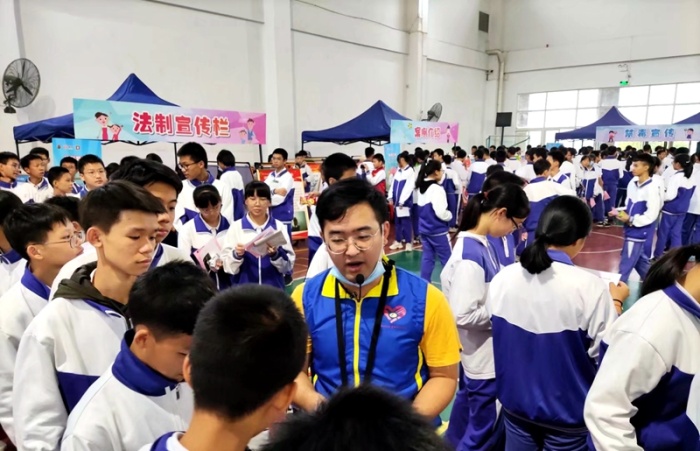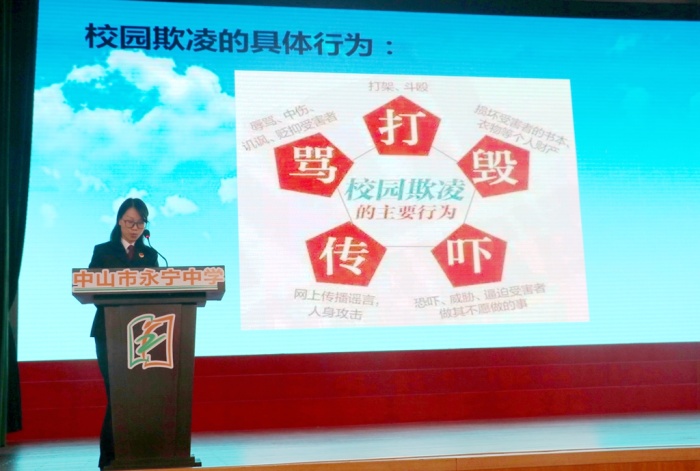 本次普法活動(dòng)以主題講座與攤位游戲結(jié)合的形式進(jìn)行,活動(dòng)中永寧中學(xué)陳清茂校長(zhǎng)向中山市第二市區(qū)人民檢察院二級(jí)檢察官鄧艷女士頒發(fā)法治副校長(zhǎng)聘書,鄧艷檢察官代表中山市第二市區(qū)人民檢察院分別向永寧社區(qū)居委會(huì)、永寧中學(xué)贈(zèng)送《用心關(guān)愛,呵護(hù)成長(zhǎng)》法治進(jìn)校園書籍。鄧艷檢察官為師生作了《向校園欺凌SAY NO!》精彩的專題講座;隨后師生們參加了“法治進(jìn)校園”游戲互動(dòng)嘉年華活動(dòng)。