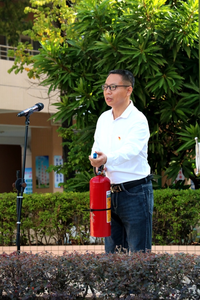 接著,初二(5)班胡婉清同學結合學習、生活實際和周邊發生的消防事例做了“關注消防,生命至上”的主題演講,介紹了家校防止“火災”發生的六點措施,呼吁全校同學珍愛生命,牢記消防知識,爭當“消防”小能手。隨后,黃小平主任作了消防安全專題教育動員講話,提出了校園安全具體要求。并為全校師生概括講解了干粉滅火器正確使用步驟和操作方法,學校保安員為師生現場展示正確使用滅火器和濕布撲滅火情的全過程。同時,學校將組織召開“消防安全”主題班會、印發“消防安全致家長一封信”、家校聯動等宣傳教育活動,通過“小手拉大手”活動,將消防安全教育輻射到家庭、社區。