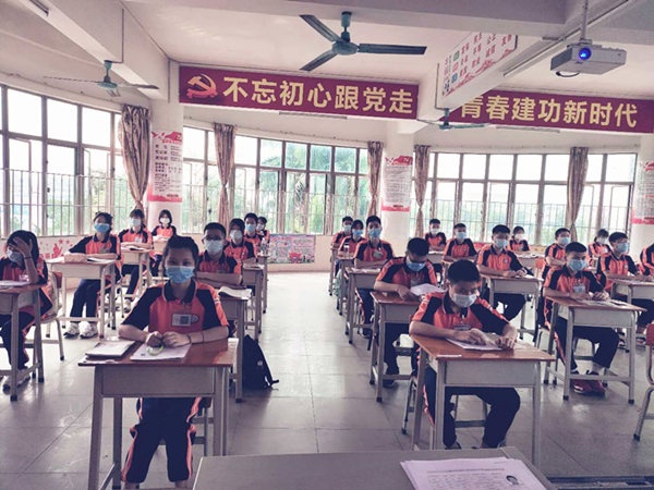 學(xué)校根據(jù)疫情防控的要求將原2個(gè)教學(xué)班,拆分成4個(gè)教學(xué)班,保證每個(gè)教室的學(xué)生不超過(guò)30人,教室座位間距一米以上。課室里,老師們已經(jīng)提前把教室和課桌清潔干凈,并全面消毒通風(fēng),班主任已提前在黑板上書(shū)寫(xiě)了歡迎同學(xué)們健康返校等標(biāo)語(yǔ)。