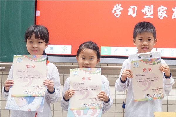 活動(dòng)中,班主任老師通報(bào)了班級(jí)積極家庭的學(xué)習(xí)積分情況,對(duì)家庭組總分前3名的“學(xué)習(xí)先進(jìn)家庭”以及寒假期間累計(jì)分?jǐn)?shù)前3名為“學(xué)習(xí)型家庭”的學(xué)生進(jìn)行表彰并頒發(fā)證書及精美禮品。