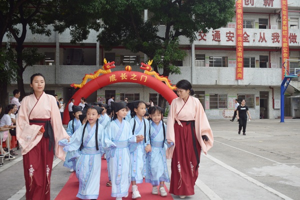 活動開始,全體一年級新生身著漢服,在老師的帶領下,跨過“成長之門”,一路向前,走向知識的大門,踏上人生的“征途”……