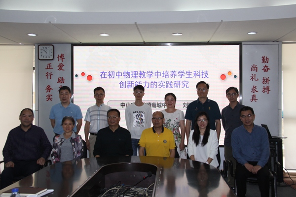 3月19日,中山市小欖鎮菊城中學在大會議室舉行了市級課題《在初中物理教學中培養學生科技創新能力的實踐研究》開題報告會。報告會邀請了中學物理正高級教師、廣東省百千萬首批名師、南粵優秀教師、中山市名教師樂水仙老師,中學物理高級教師、中山市東區物理工作室主持人莫麗影老師,廣東省中學物理骨干教師、小欖鎮物理學科帶頭人陳源斌老師,中學物理高級教師、小欖鎮物理中心組成員王志珍老師一行四人對課題進行了開題論證,報告會由學校教導處王以煥副主任支持,參加會議的還有王永月校長、林木茂副校長、黃明英副主任及課題組全體成員。