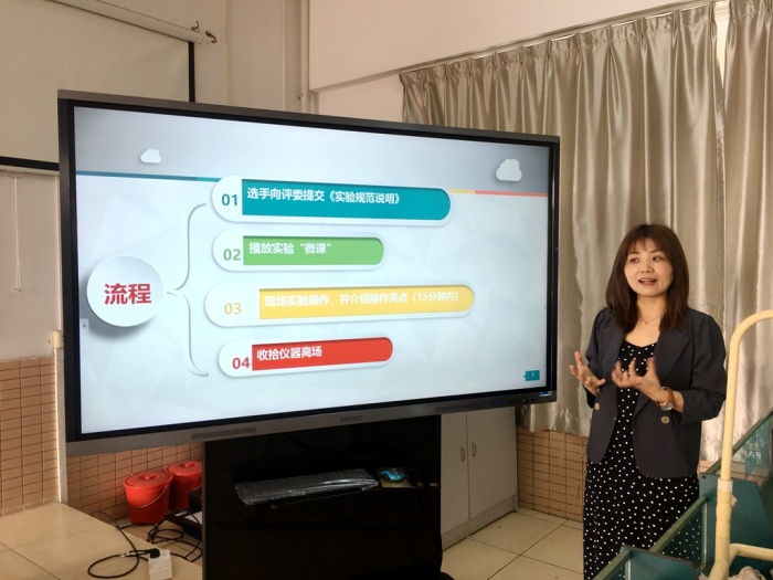 在比賽現場,參賽的7位教師錄制的微課從設計、講解、表現和效果都體現了以學生為本,學生能通過微課快速地掌握所學知識,都是很好的微課。現場操作環節,每一位參賽教師都展示了嫻熟的實驗操作技能,每一個實驗環節都設計得井然有序,力求精準規范且各有亮點。