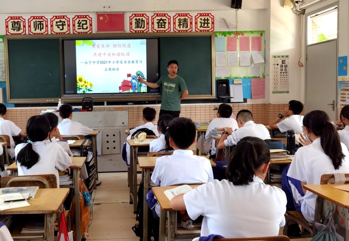 3月30日下午,永寧中學組織各班召開“關愛生命,預防欺凌,共建平安和諧校園”主題班會,全面加強防火、防溺水、防交通事故、防食物中毒、防網絡詐騙、防欺凌、防暴力傷害、防毒品、防傳染病等“九防”教育,特別針對清明假期安全工作做了重點布置和提醒,讓安全知識入腦入心,不斷提升學生們安全素養。