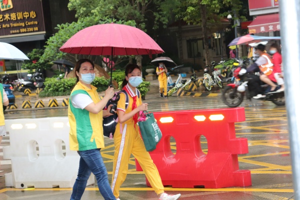 該校從以下“細節”支起暖心通道。細節一:早上7:00,校門口支起了一條暖心通道,晨檢準備工作已經部署完畢,天氣預報今日有雨,學校未雨綢繆、細致安排,早早便搭好寬大的雨蓬、備好充足的雨傘雨衣。細節二:拉起引路的紅線,處處可見的路標、路牌,以及值日老師們親切的問候和指引,讓回歸的學子們消退迷茫,快速熟悉起昔日校園,為孩子們安全復學、有序復課保駕護航。細節三:初夏雨瀑忽傾,每一位迎接的中心小教師,立即拿起備好的雨傘沖進雨中,給孩子們撐起了一片晴空。狂風暴雨中大大的傘面微微傾斜,老師們淋濕了半邊身子,卻扶著身旁好久不見的孩子們,欣然微笑,“你若安好便是晴天”。