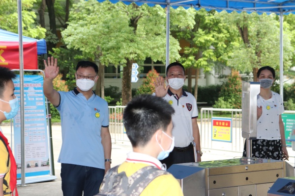 迎生“三連擊”:豎起大拇指對學子們贊嘆“你真棒”;口罩也遮不住會笑的眼睛,“你笑起來真好看”;伸出手臂來一個“蝴蝶抱”吧,“許久不見,甚是想念”——這是該學校校長鄭義富 “笑臉”迎生“三連擊”。在他們的提醒與指引下,孩子們遵守規則,返校井然有序,街道交通暢通無阻。