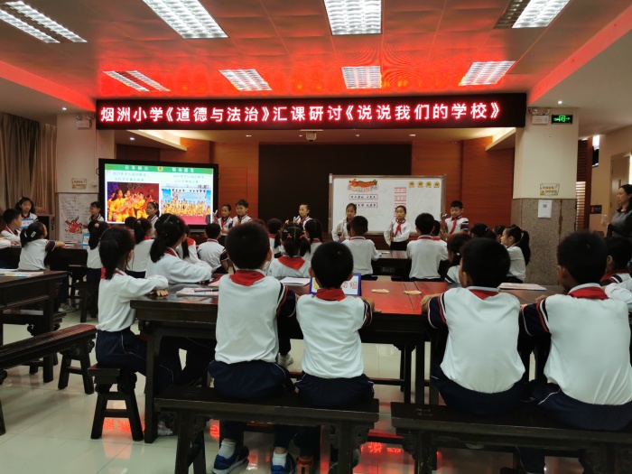 11月18日下午2:30,煙洲小學周泉老師在一樓多功能室展示了一節繪聲繪色的道德與法治課——《說說我們的學校》,來自西區各所學校的道德與法治老師對本節課進行了學習和研討。