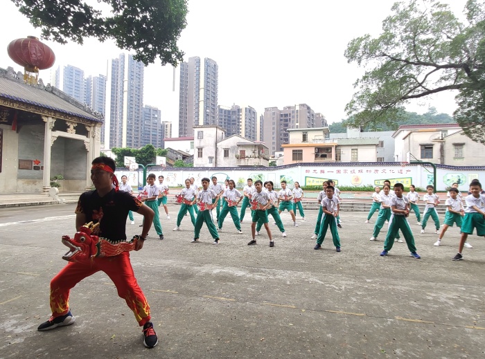 醉龍舞是古老的民俗活動,人們舞動時表現出“形醉意不醉,步醉心不醉”的特質,體現出一種“積極進取,生生不息”的精神。煙洲小學作為醉龍文化項目特色學校,煙洲小學以提高學生審美與人文素養、促進學生身心健康全面發展為使命,以美育為載體,繼承和發揚西區深厚的文化底蘊和藝術精神,積極構建學校美育體系,面向全體學生創新開展了形式多樣、內容豐富、極具特色的醉龍操,學生學習醉龍舞文化,做醉龍操,傳承醉龍文化。