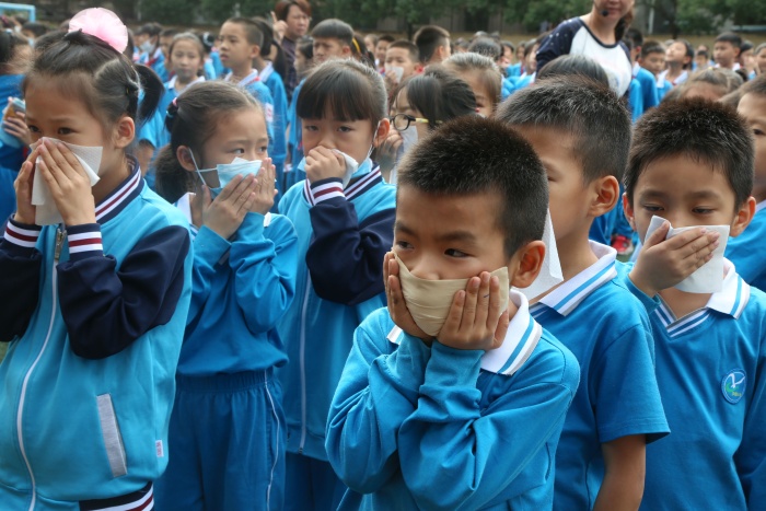 疏散演練開始,急促的警報聲響徹校園,各樓層疏散老師立即到崗,上課教師第一時間組織好學生,同學們用濕毛巾或手捂住口鼻,彎腰有序地從指定樓道迅速撤離,全校九百余名師生在不到兩分鐘的時間里迅速地撤離到安全地帶。然后學生觀看了模擬火災現場消防員是如何把火撲滅的。演練結束后,西區消防中隊的牛警官就本次消防應急疏散演練活動做了總結講話,他希望全體學生要加強學習安全自護知識,不斷提高自救、自護能力,遇到突發事件能保持冷靜頭腦,沉著、有序、快速地撤離到安全地帶。消防隊的指揮員還給全體師生講解滅火器的使用方法,并現場演示如何滅火;給全體師生講解火災現場防毒面具及消防水帶的正確使用。師生們個個聽得認真,更是興致高昂地舉手要現學現用,都想操作一下滅火器的使用。