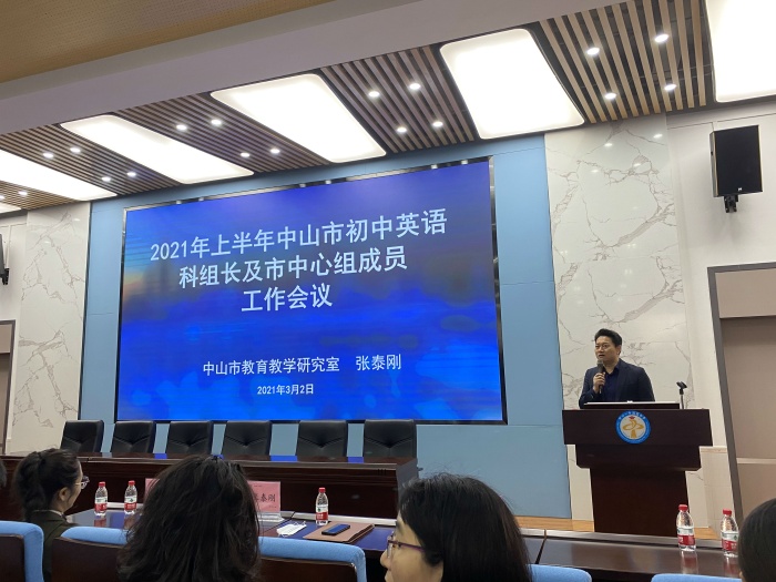 2021年3月2日上午,中山市初中英語科組長及市中心教研成員會議在中山一中西區(qū)中學(xué)舉行。中山市教育教學(xué)研究室英語教研員張?zhí)﹦偂⑽鲄^(qū)街道教育和體育事務(wù)中心英語教研員姚佳、中山一中西區(qū)中學(xué)校長范振海、中山市英語中心教研組成員以及市各初中英語科組長參加了會議。