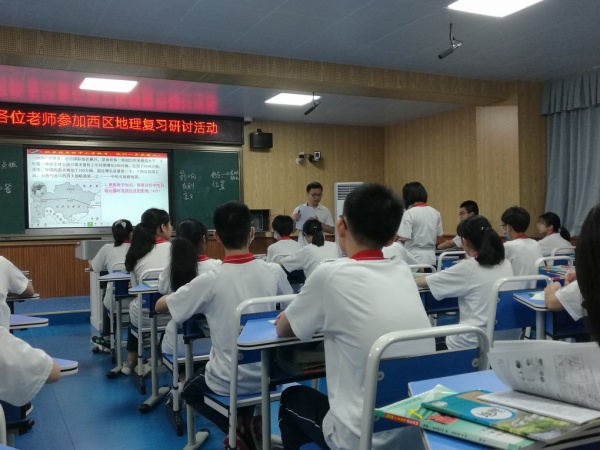 最后是西區中學吳孟忠老師的《北方地區復習課》。吳老師經驗豐富,善于培養學生的自主學習能力,在進行第二輪復習的基礎上,讓學生自己歸納總結,通過展示學生的作品,發現學生易出錯的知識點,如“寒冷”一詞表示氣溫低于0攝氏度;怎么通過圖看雨熱同期;經濟作物和糧食作物的區別等等,基礎扎實,課堂容量大,邏輯思維強,重難點突出。