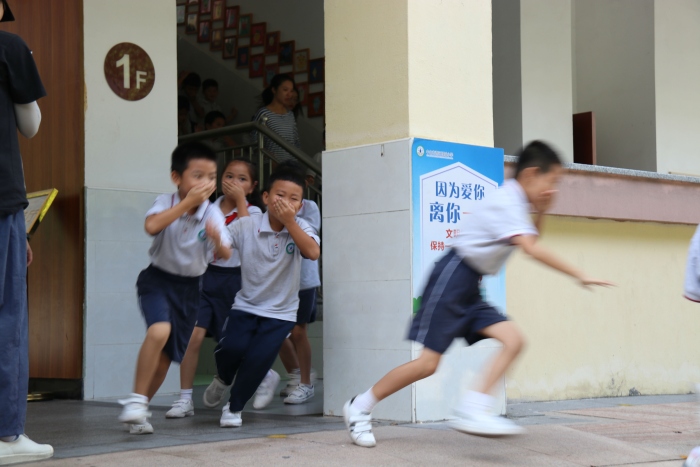 9月23日大課間,全體師生準備集隊前往操場,隨著一聲警報響起,各班學生在老師的組織下,立刻緊急疏散,迅速從各道樓梯去往操場。在緊急撤離過程中,全體行政、級長等分布各樓層,提醒學生有序離開,確保安全。演練過程中,全體師生反應迅速、配合默契,采取處置措施及時、合理,表現出良好的應對能力。
