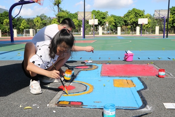當天上午,共有40組家庭參與活動中來。在活動現場,孩子們或蹲或坐,在爸爸媽媽的陪伴下,將各式各樣的井蓋變成美麗的畫卷,展示自己不凡的創意。孩子們的涂鴉圖案不拘一格,種類繁多、明艷鮮活,一幅幅色彩斑斕、妙趣橫生的美麗圖畫,給全校的40余個井蓋賦予了新的生命,為校園美化做了一份貢獻,更為校園增添了生機與活力。