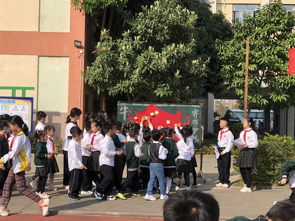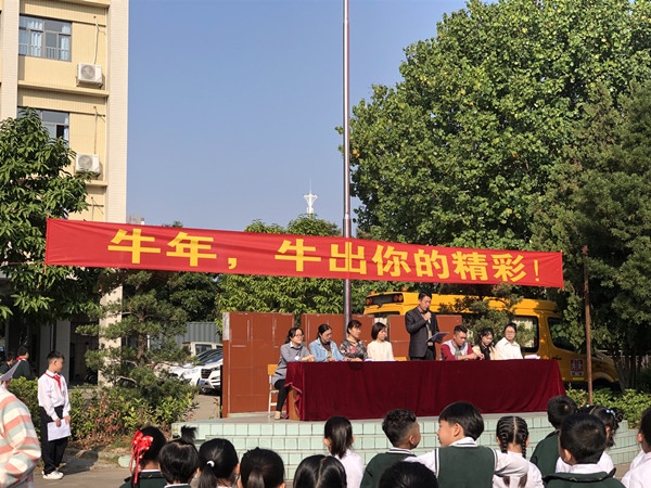 奏響歡快的樂曲,熱鬧的舞蹈和啦啦操拉開了新學期的序幕。伴隨著雄壯的國歌聲,五星紅旗冉冉升起。首先,該校雷萬兵校長為大家送上新學期寄語,期望老師們團結勤奮、進取創新;期盼同學們樹立優良的學風,養成良好的學習、行為、生活習慣,爭當健康向上的和美少年。之后,學生代表陳曉晴發言,呼吁全體學生,心懷目標,充滿自信地迎接新的挑戰。然后,該校全體學生在“牛年寄存夢想”處簽名,每班三位學生代表貼到升旗臺旁邊的黑板上。最后,由該校正副班主任給同學派發新年祝福紅包,送上新年的祝福。