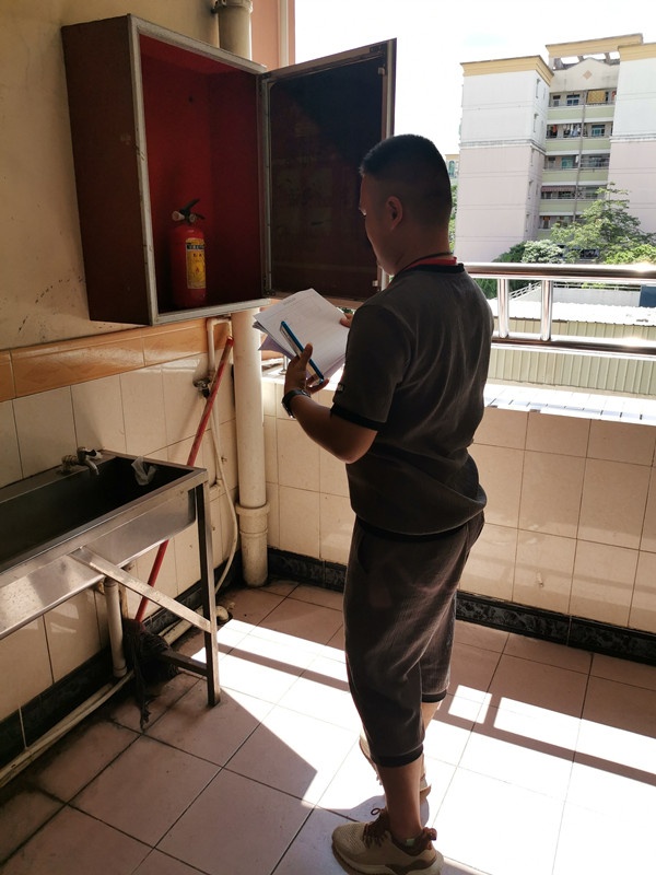 6月12日上午,在檢查消防設施時,林主任強調:分工合作,檢查工作要細致,發現問題及時解決或上報。具體分工是:林主任負責檢查一樓及飯堂的消防設施,林鐘坤老師負責檢查教學樓二樓,羅宇老師負責檢查三樓,潘尚真老師負責檢查四樓。檢查情況如實匯報給林主任。林主任針對存在的問題馬上作出整改,如消防箱里的滅火器不夠,林主任和老師們從庫房取出補充到相應的消防箱里。羅老師在檢查中發現個別消防栓的水閥有生銹和被腐蝕的現象,林主任知道后便通知專業人員進行維修。與此同時,潘老師和林老師反映個別消防栓出水慢和小的問題,林主任也全部列出清單進行整改,大部分問題當天已完成整改。