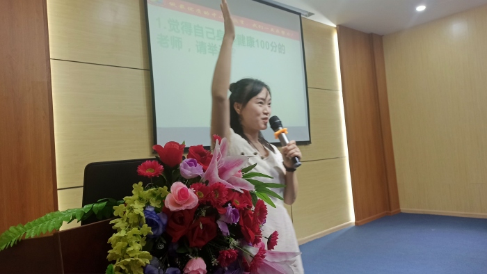 9月18日,心理老師廖艷為全體教師開展了一節(jié)精彩的心理輔導課。廖艷老師通過調(diào)查讓老師們知道心理問題就像感冒一樣,應該摒棄偏見,正常面對。每位老師在廖老師的引導下,寫下自己近期的煩惱和心理感受,思考并寫下解決方案。在歡聲笑語中老師們紛紛表示在今后的教育教學工作中,將運用心理健康知識及心理輔導技巧幫助學生樹立陽光心態(tài)。