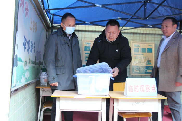 蘇文森先來(lái)到保安室,實(shí)地檢查安保措施落實(shí)情況,對(duì)值班保安提出了具體要求,希望保安同志們能堅(jiān)守崗位,不能輕易放進(jìn)無(wú)關(guān)人員,特殊情況進(jìn)校者必須消毒測(cè)溫、掃健康碼,要讓全校師生的安全感更有保障。在學(xué)校臨時(shí)觀測(cè)點(diǎn),蘇文森表示,檢測(cè)點(diǎn)防疫物資完備,衛(wèi)生清潔,布置科學(xué)合理,一定要按到防疫要求做好細(xì)心觀測(cè)。前往校醫(yī)室,蘇文森詳細(xì)詢(xún)問(wèn)了防疫物資儲(chǔ)備情況以及學(xué)校師生近期是否存在發(fā)熱情況,蘇文森強(qiáng)調(diào),防疫工作依然十分嚴(yán)峻,不能放松警惕,一定要嚴(yán)防死守,措施到位,積極預(yù)防。來(lái)到學(xué)校食堂,蘇文森對(duì)食品安全臺(tái)賬進(jìn)行詳細(xì)檢查,并查看了食堂衛(wèi)生安全。就食品安全問(wèn)題向?qū)W校食堂工作人員進(jìn)行宣傳,他要求一定不能購(gòu)置冷凍食材,嚴(yán)格防范新冠病毒,要切實(shí)保障食品安全。在巡視教師辦公室時(shí),蘇文森對(duì)教師進(jìn)行親切的問(wèn)候并在學(xué)校三樓黨員活動(dòng)室召開(kāi)教師座談會(huì),認(rèn)真傾聽(tīng)了教師的工作感受和對(duì)學(xué)校的意見(jiàn)建議,教師們暢所欲言。屋外寒風(fēng)習(xí)習(xí),但是蘇文森的噓寒問(wèn)暖令室內(nèi)暖意融融。